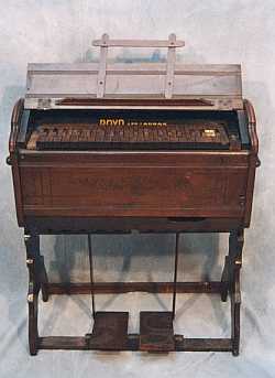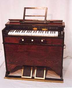Organo ad ancia, costruito a cavallo del XIX e XX secolo, marchiato: Estey Organ Co Brattleboro Lt U.S.A. Questi strumenti furono usati principalmente per l’accompagnamento musicale nelle cappelle metodiste in sostituzione degli organi a canne. Essi funzionano come gli armonium, con delle ance metalliche disposte su di un somiere messe in vibrazione dall’aria pompata da due pedali quando sono liberate dal movimento dei tasti. Questo strumento presenta dieci registri e due ginocchiere.
