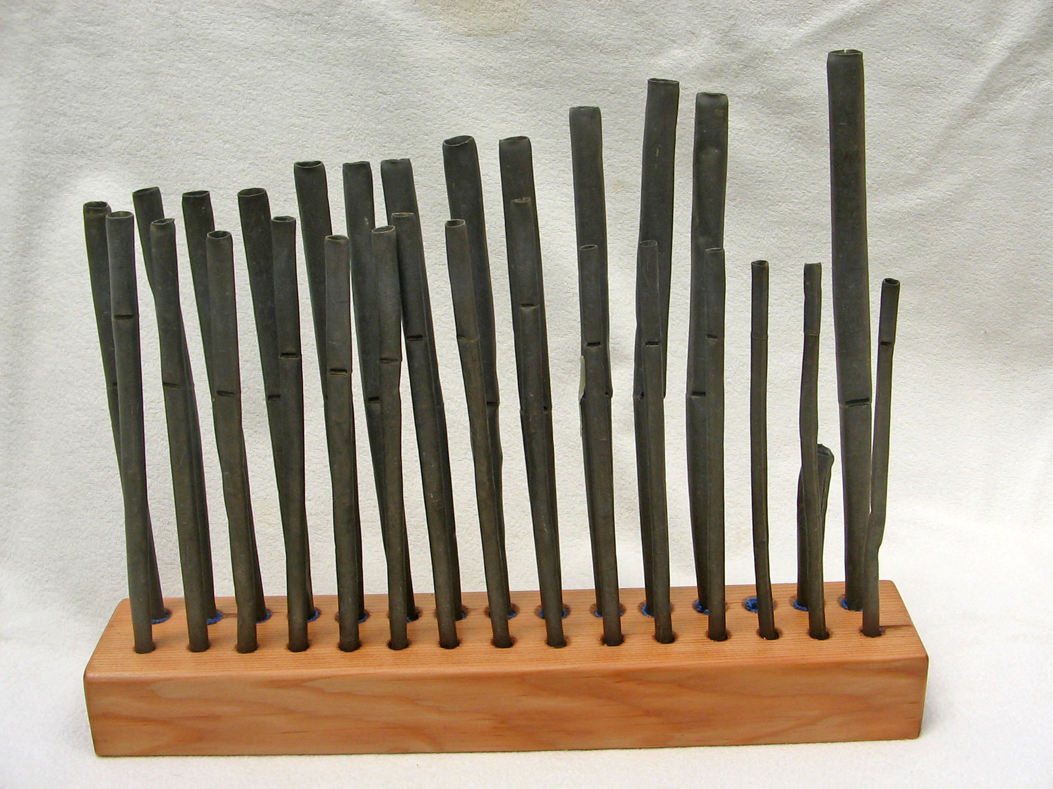 Canne di organo provenienti da uno strumento italiano di probabile fattura settecentesca. Sono un gruppo di ventinove piccole canne in piombo e stagno che emettono le seguenti note: LA, LA#(rotta), DO, DO, DO#, DO#, DO#, RE, RE#, RE#, FA, FA, FA#, SOL, DO#, LA#, LA#, FA, DO#, RE, RE#, MI, FA#, SOL, SOL#, SOL#, LA#, DO, DO#. Le dimensioni vanno da mm. 220 a mm. 320.