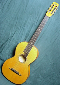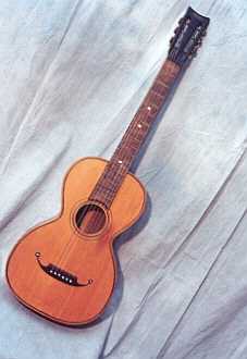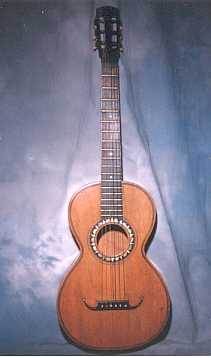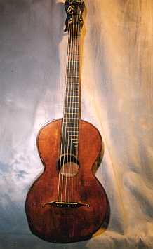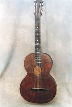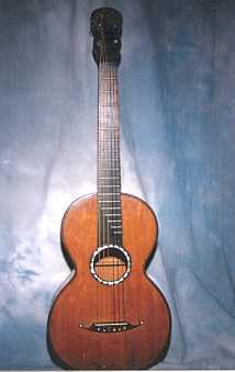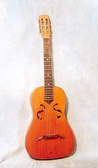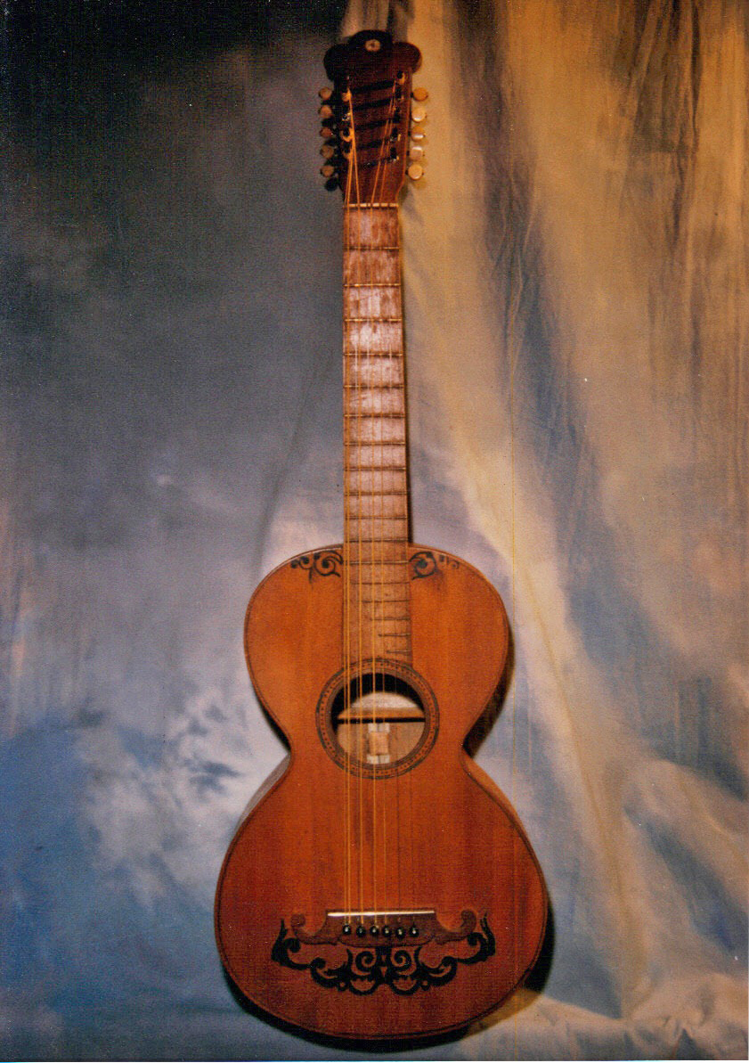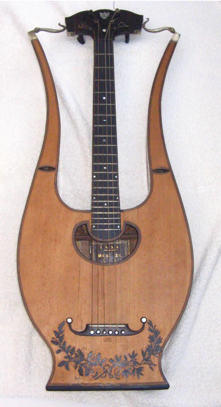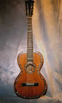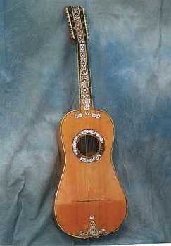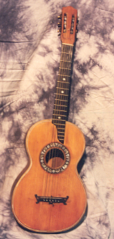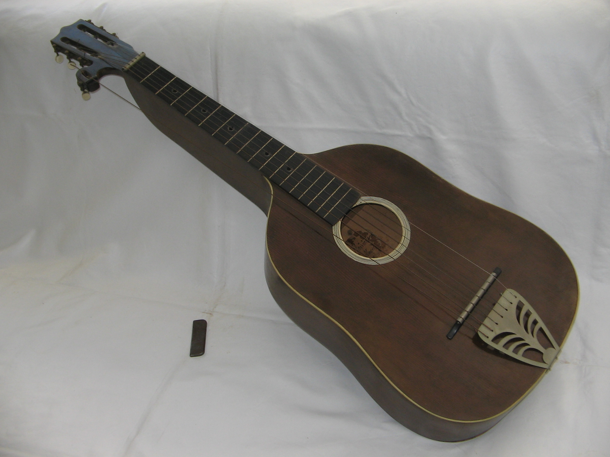 Chitarra anonima, costruita da un liutaio esperto tra il secondo ed il terzo decennio del XX secolo. Lo strumento ha il fondo, in due parti, e le fasce in palissandro, la tavola in abete di ottima qualità con venature regolari e fitte contornate da una triplice filettatura bianca, il ponticello è successivo. La buca è contornata da due triplici filettature in legno scuro in mezzo ai quali vi è un bel fregio in madreperla. Le meccaniche hanno farfalle in osso mentre il manico è in noce e presenta 17 tasti che, sulla tavola, sono presenti solo per le corde acute.