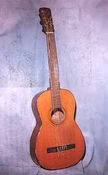 Chitarra tedesca fine '800, marchiata " SONORA". Fondo in due parti e fasce in acero, tavola in abete senza la consueta buca ma con due aperture vagamente a forma di "effe", manico e cavigliere (innestato sul manico all'altezza del II tasto) in noce, 18 tasti metallici.