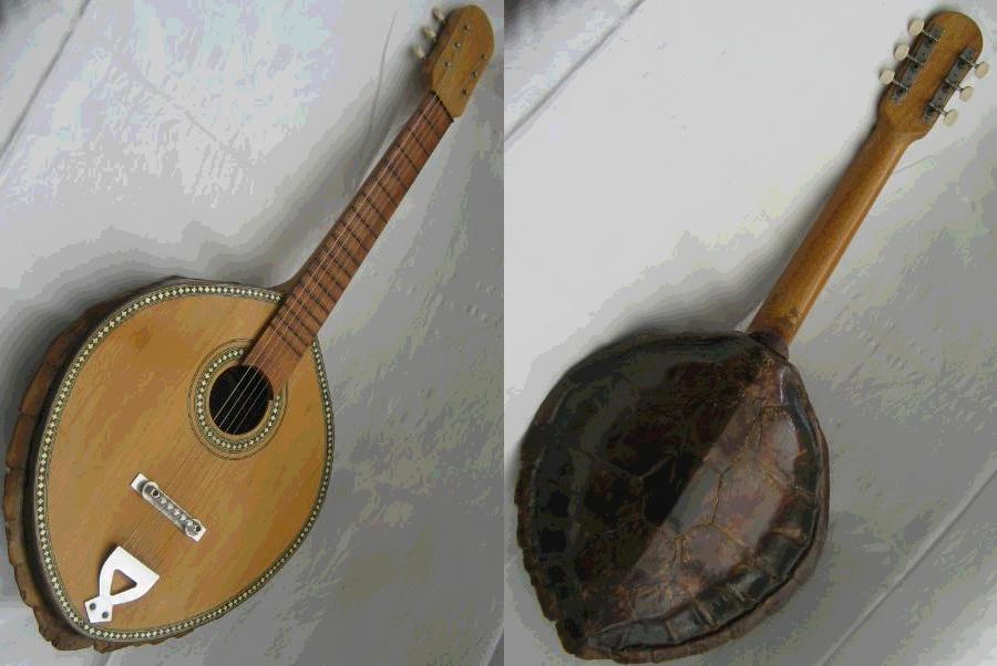 Chitarra italiana anonima, costruita probabilmente nel secondo quarto del XX secolo. È costituita da guscio di tartaruga che funge da fondo, le fasce sono anch’esse in tartaruga mentre il piano armonico è in abete con una buca tonda di mm.71, piano e buca sono contornati da un fregio in ebano e madreperla. Il manico e la paletta sono in legno chiaro mentre la tastiera è in palissandro con 17 tasti metallici. La meccanica presenta farfalle in osso mentre il ponticello e il tiracorde sono in alluminio. Lo strumento è lungo mm. 902 e largo mm. 398.