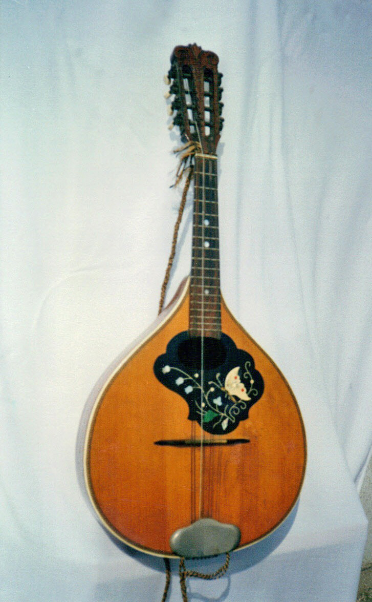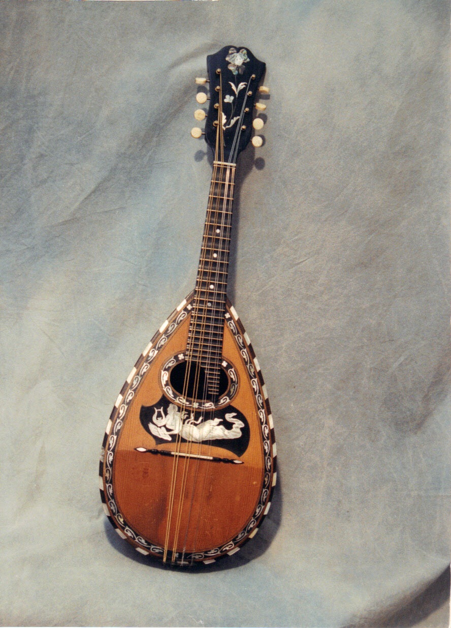 Mandolino napoletano, primi decenni del XX secolo, l'etichetta interna recita: LUIGI POPPI / premiata fabbrica / di mandolini / PALERMO. Lo strumento presenta una tavola in abete con battipenna in tartaruga e decoro in madreperla a forma di farfalla. La buca, ovale, è contornata da un decoro in madreperla ed ebano mentre la tavola è contornata da un doppio filetto e pezzi di ebano ed osso alternati. Il guscio è formato da 21 fasce di noce come anche il manico e la paletta mentre la tastiera è in palissandro.