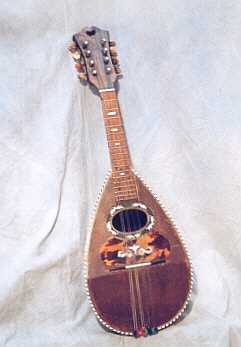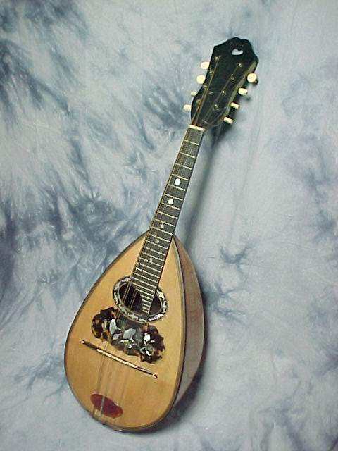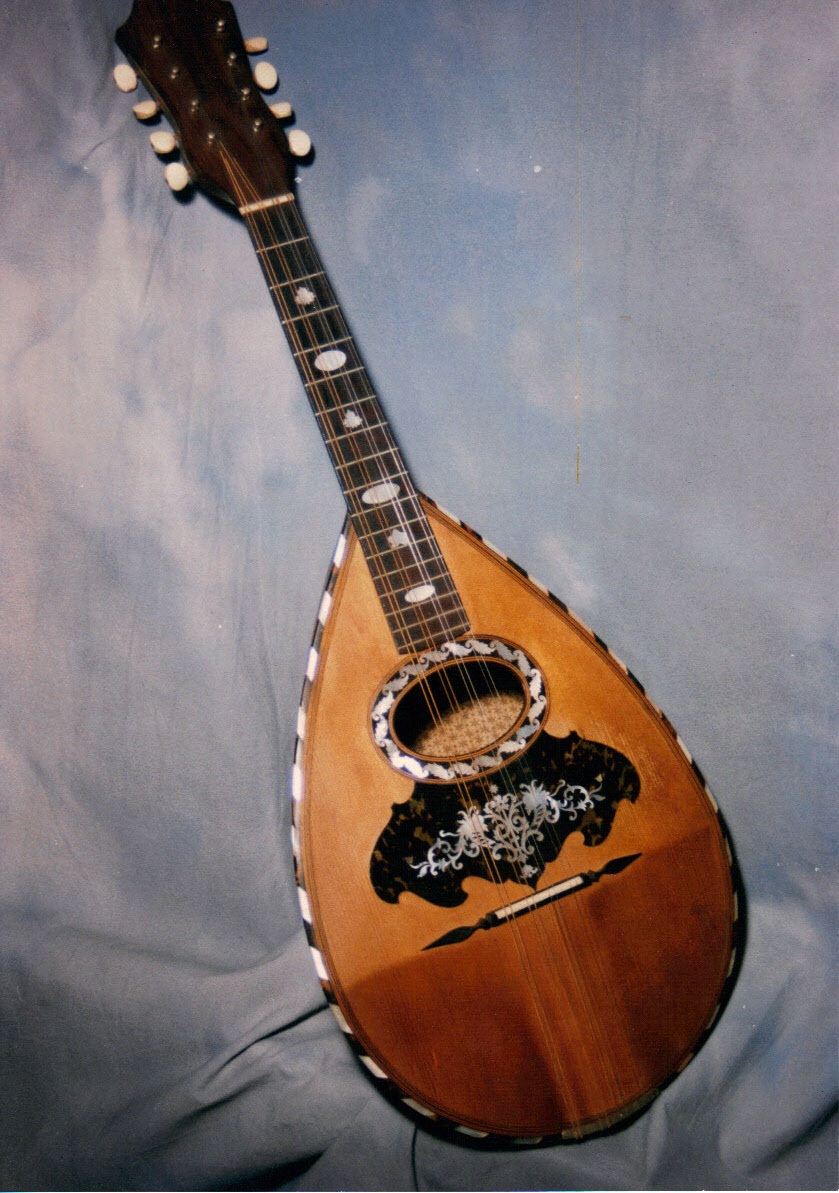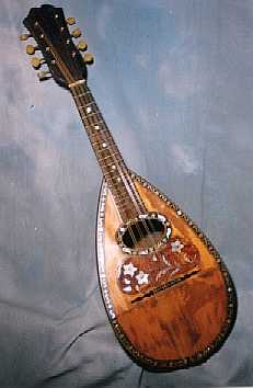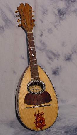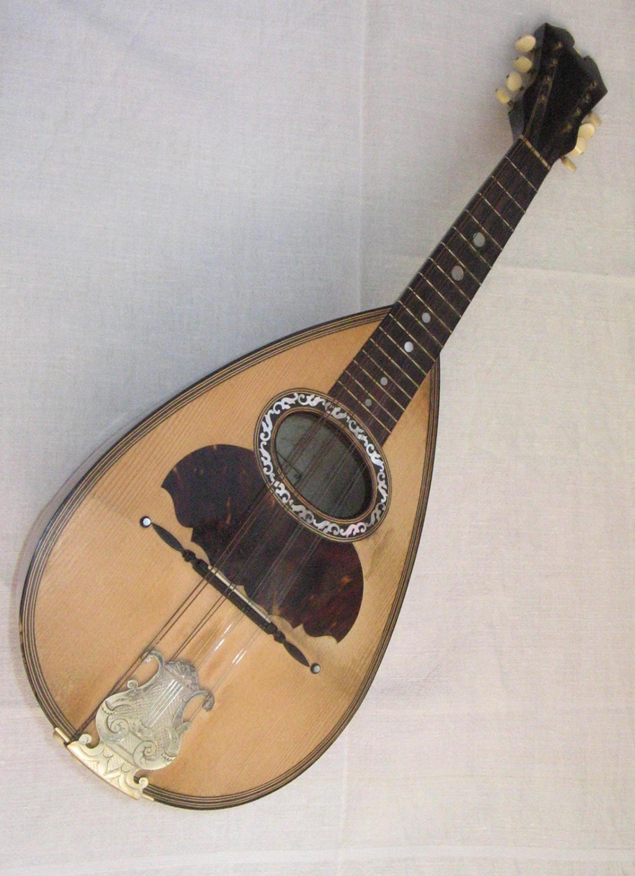 Mandolino Casella, napoletano fabbricato dalla ditta Mario Casella a Catania nel primo ventennio del '900. Lo strumento presenta un guscio composto da 29 doghe di palissandro con filettatura in acero, controfascia in acero e palissandro, manico e paletta in noce, la tastiera in ebano con prolungamento fino alla buca monta 28 tasti metallici. La tavola è in abete e presenta ai bordi un elegante fregio in palissandro e madreperla e, all'interno, un secondo fregio di madreperla su ebano, motivo che è riportato intorno alla buca; il battipenna è in ebano con un'applicazione in madreperla rappresentante la musa della musica.