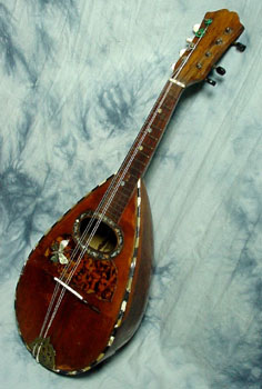 Mandolino-lira napoletano, corpo, controfascie e guscio a 28 doghe di palissandro, manico, tastiera e cavigliere in noce, capotasto e farfalle della meccanica in avorio, piano armonico in abete con battipenna in tartaruga, foro armonico ovale e contornato da fregi in ebano e madreperla. All'interno appaiono due cartigli, il primo dei quali in francese recante la dicitura FRATRES CALACE NEAPOLI / FECERUNT 1897 e la firma autografa. Il secondo, in italiano recante i premi conseguiti e, racchiusa in un ovale, la dicitura: Flli CALACE / Napoli / (Italia) / via Quercia 5 e 5.