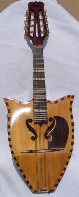 Mandolino mezza-lyra, costruito dal liutaio Alfredo Privitera, già operaio della ditta Carmelo Catania, che negli anni ’70, costituì una sua liuteria che ben presto divenne tra le migliori della Sicilia. Questo strumento e armato con cinque cori di due corde accordati in Mi, La, Re, Sol, Do. La tavola è in abetecon una buca ovale al centro e una piccola e tonda sul braccio sinistro, il fondo piatto e le fasce sono in acero mentre manico, copricorde inferiore e tastiera sono in noce. Sul cartiglio interno è stampato: Liuteria Classica / Maestro Liutaio / Alfredo Privitera / Made in Italy. Lo strumento è lungo mm. 721.